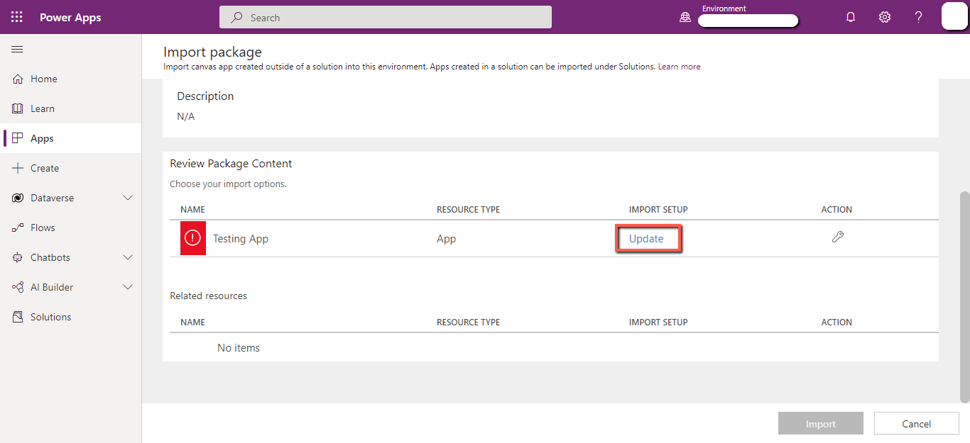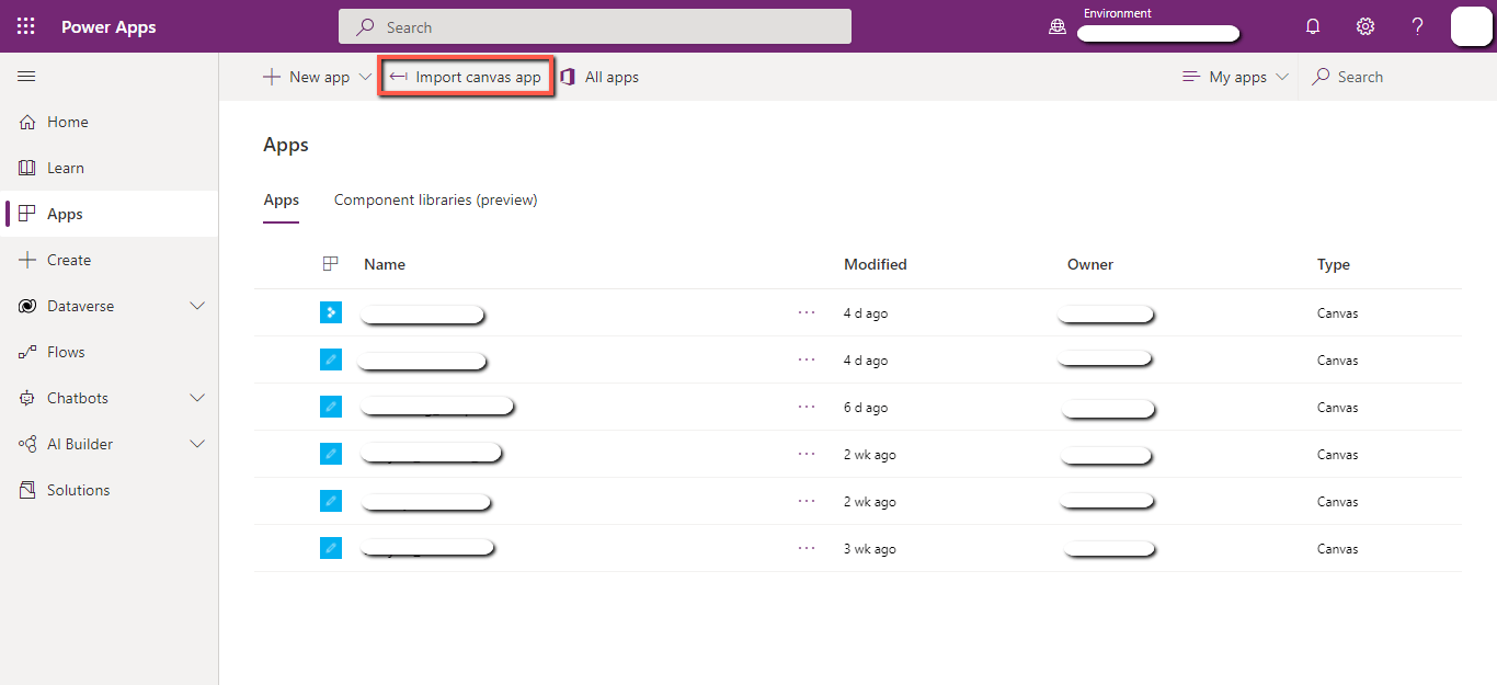- Click on the “Import canvas app”.