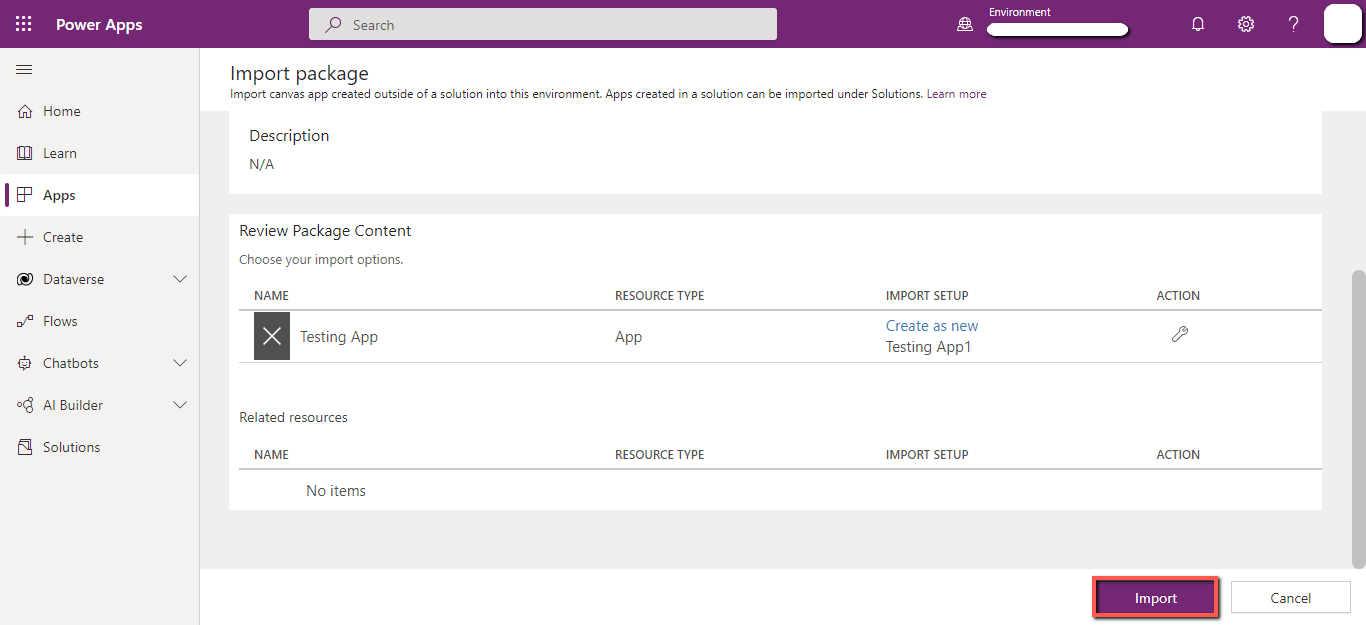 Follow the steps given below to move the Power app across tenants.
